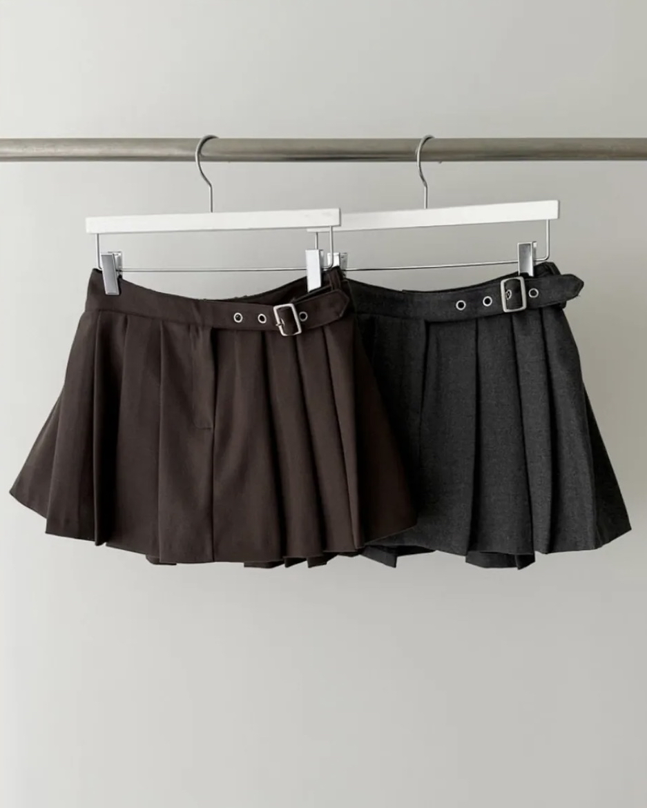 【 韓國連線🩶 | 極高質量🇰🇷♪ 學院風!半Belt挺身絨百摺裙褲💿】Into you Pleated Skirt Pants(兩色入)