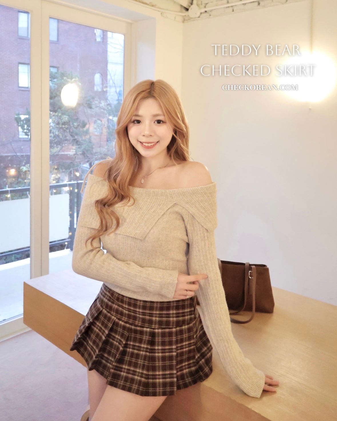 【 韓國連線🥯 | ɞ超特別の調色🤎韓系半百摺四季A字裙♪ 】 Teddy Bear Checked Skirt(兩色入)