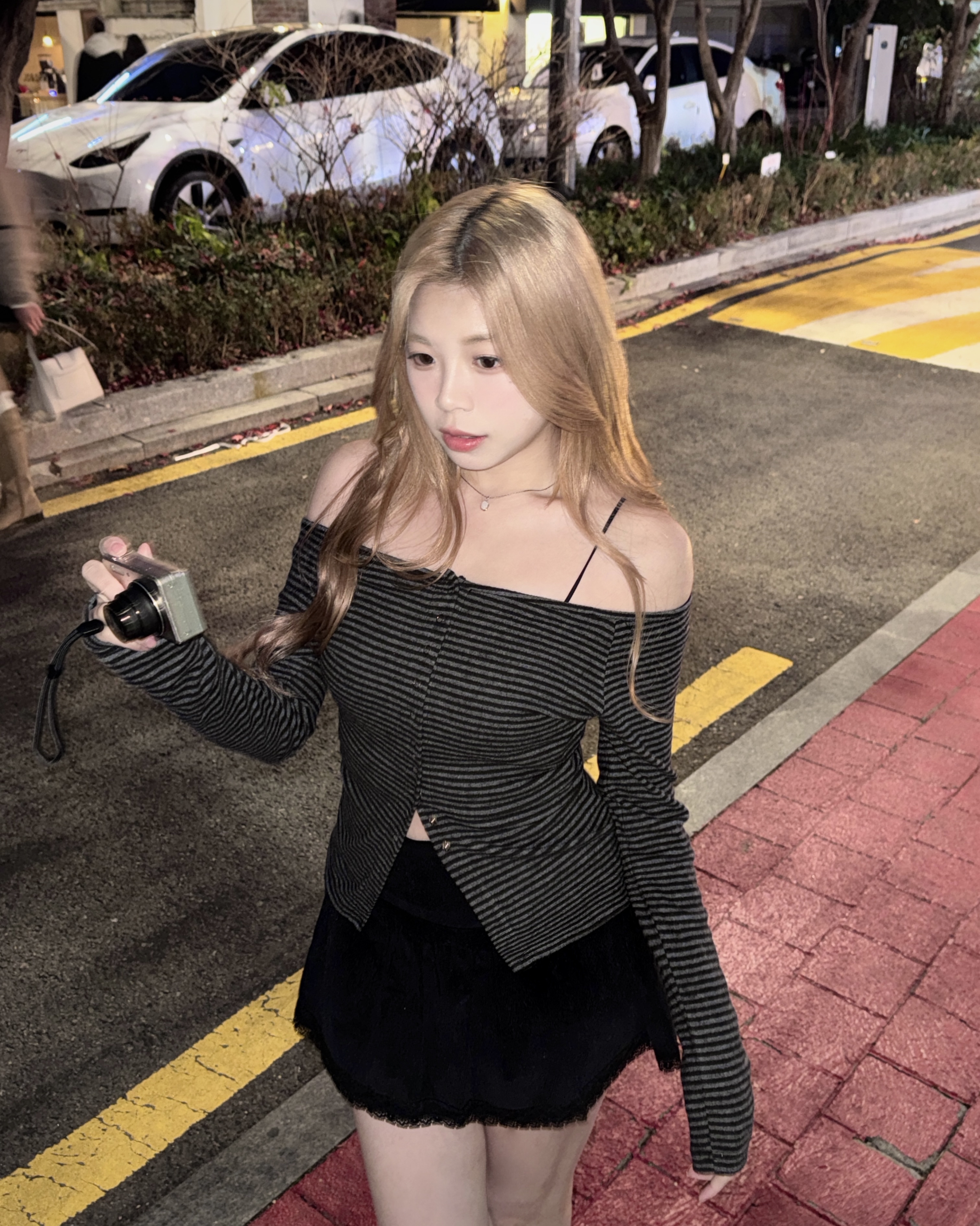 【 韓國連線🖤 | 弘大甜酷風💿多變化!間條啪啪鈕開叉薄絨上衣🌪️】Off the Record Stripe Top(三色入)