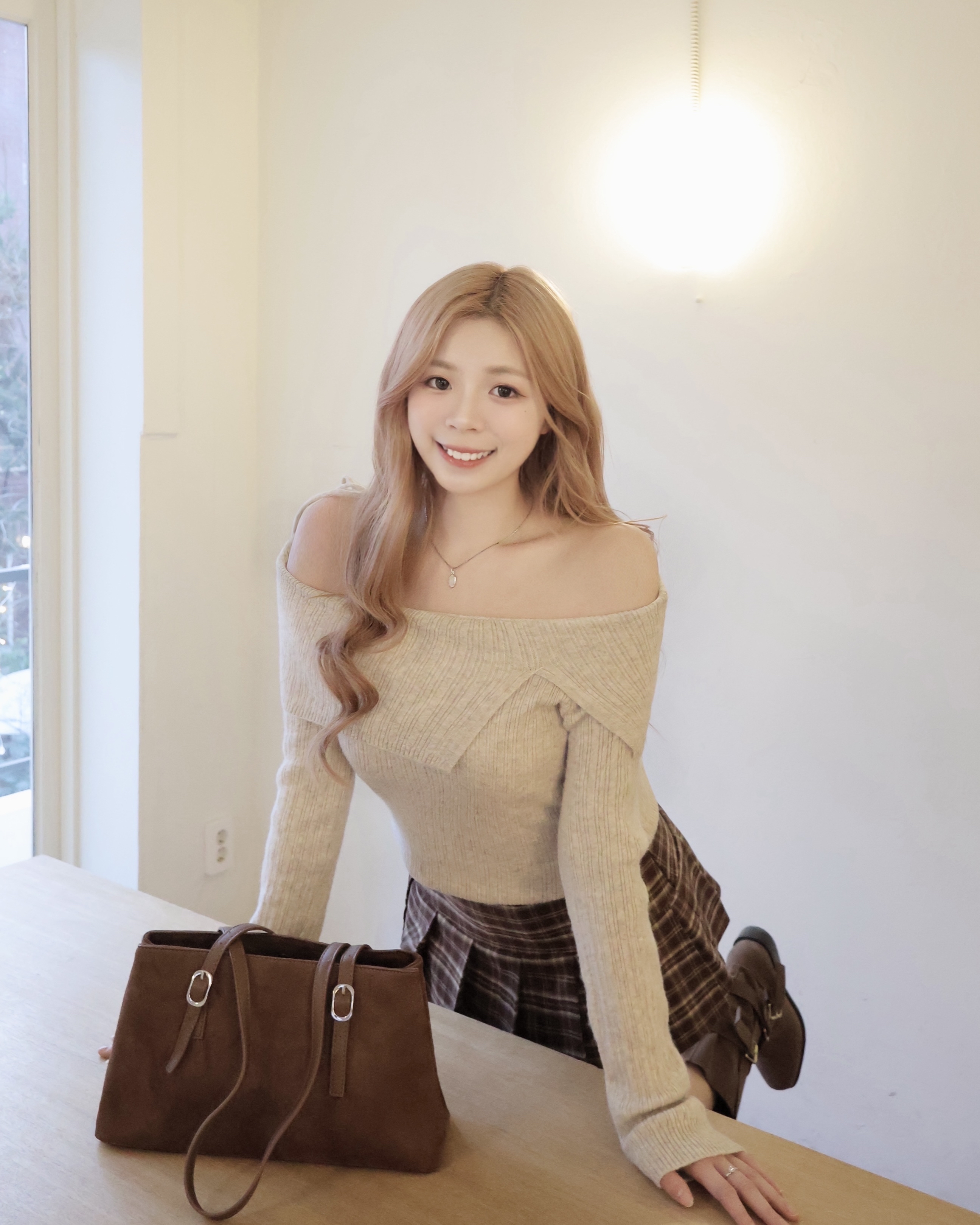 【 韓國連線🇰🇷 | 🍧 韓國街頭出現率極高 ♪ 大勢氣質反領💕WOOL直坑紋一字膊ღ♡ 】 Onni Off Shoulder Knitwear(五色入)