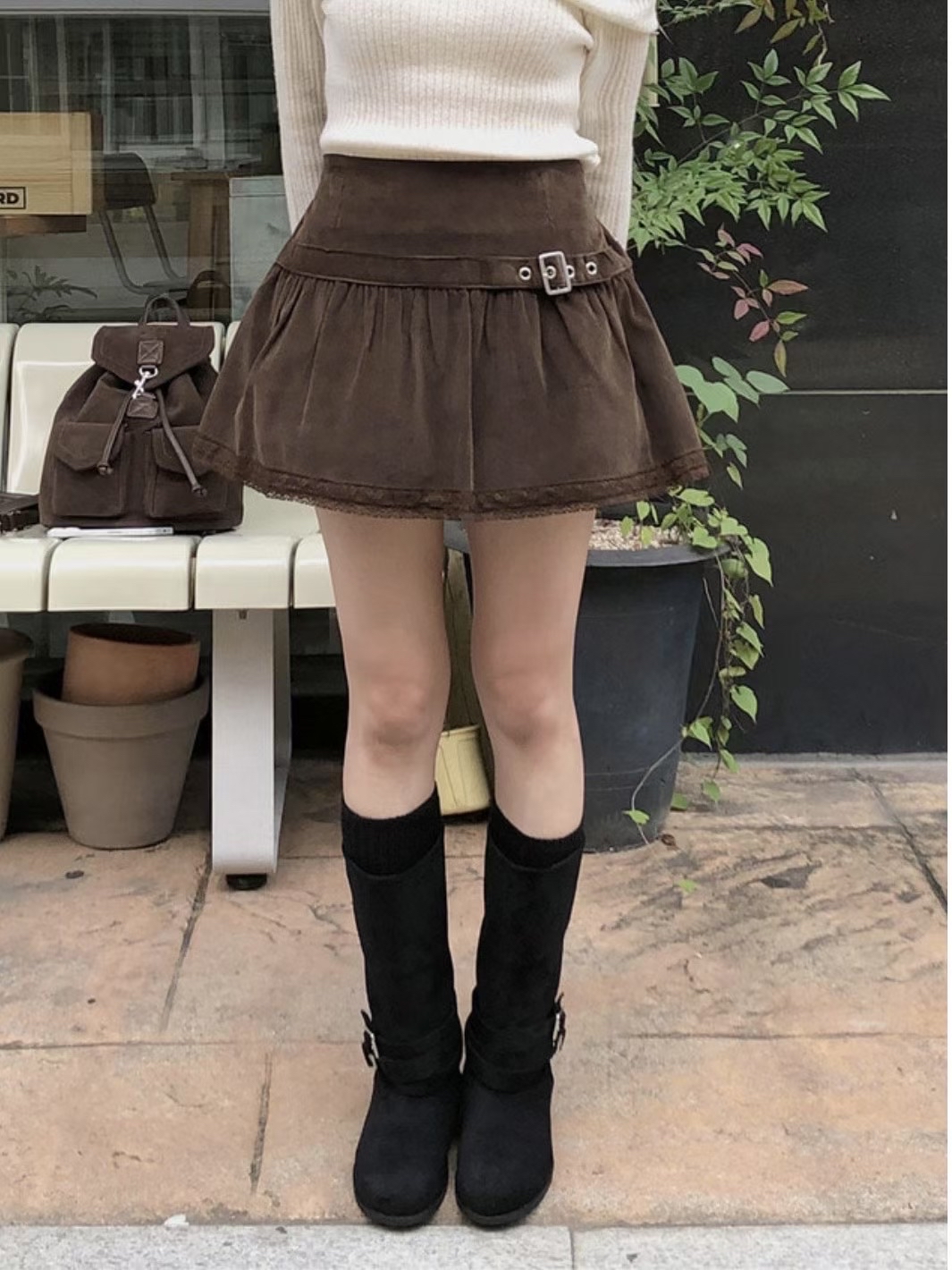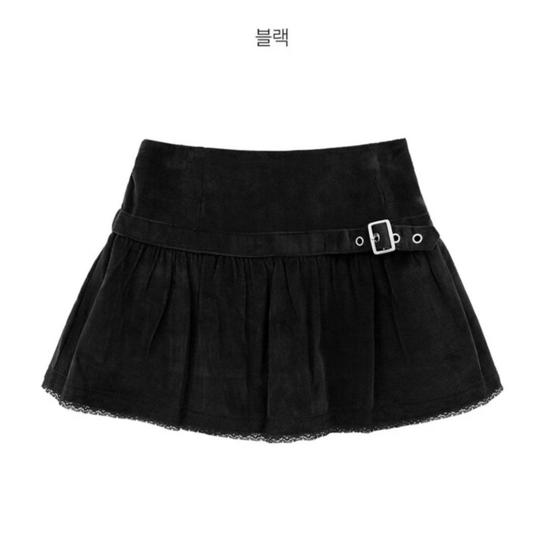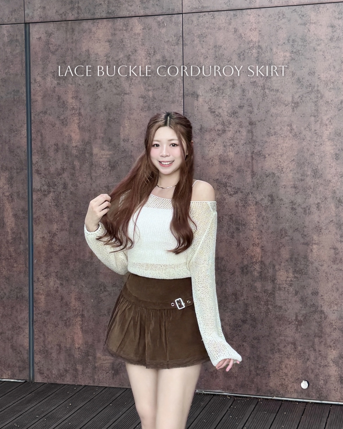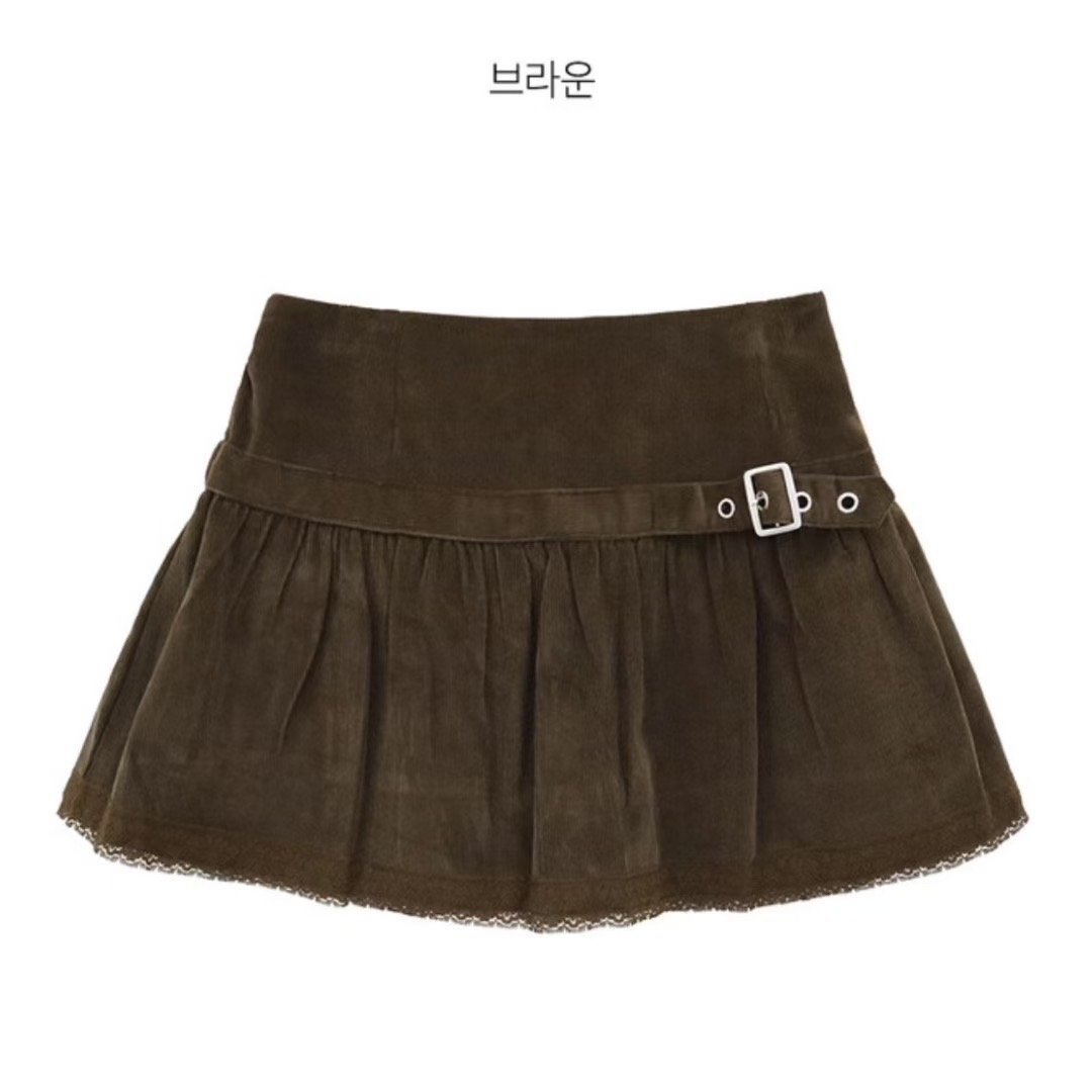 【 :.ღ店主包色自留!美式復古感~🤎美設計!銀扣蛋糕燈芯絨短裙褲ɞ˚】Lace Buckle Corduroy Skirt(兩色入)