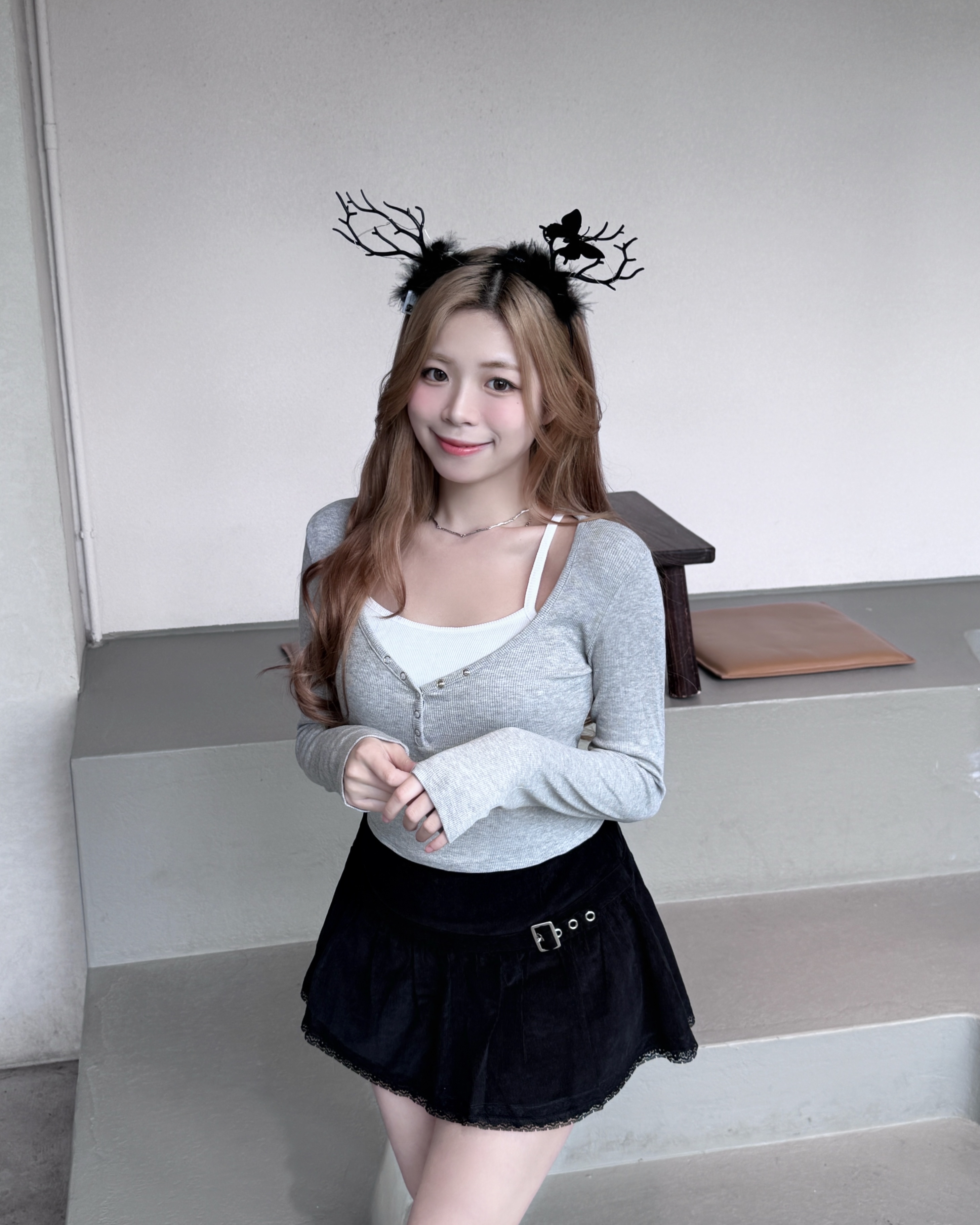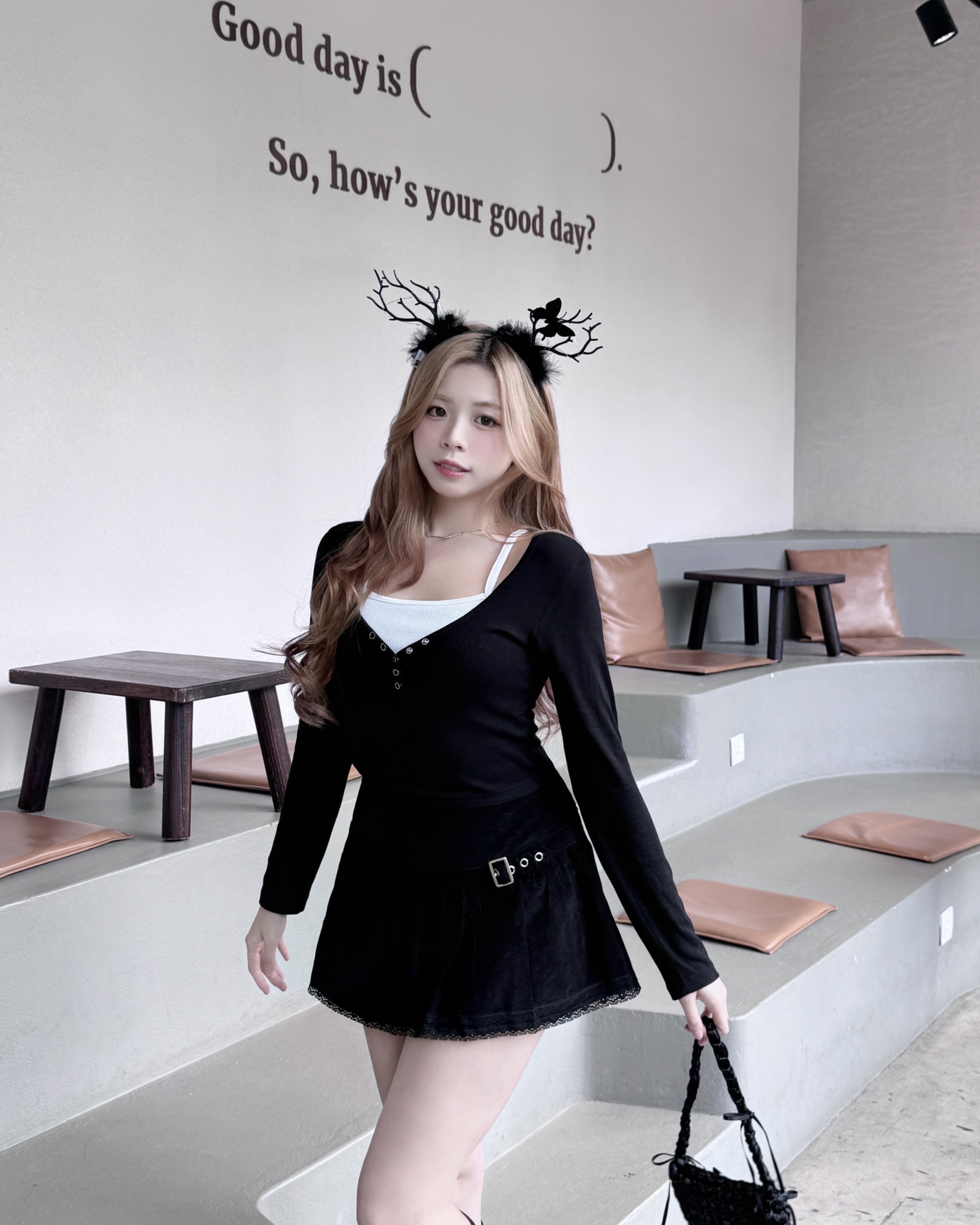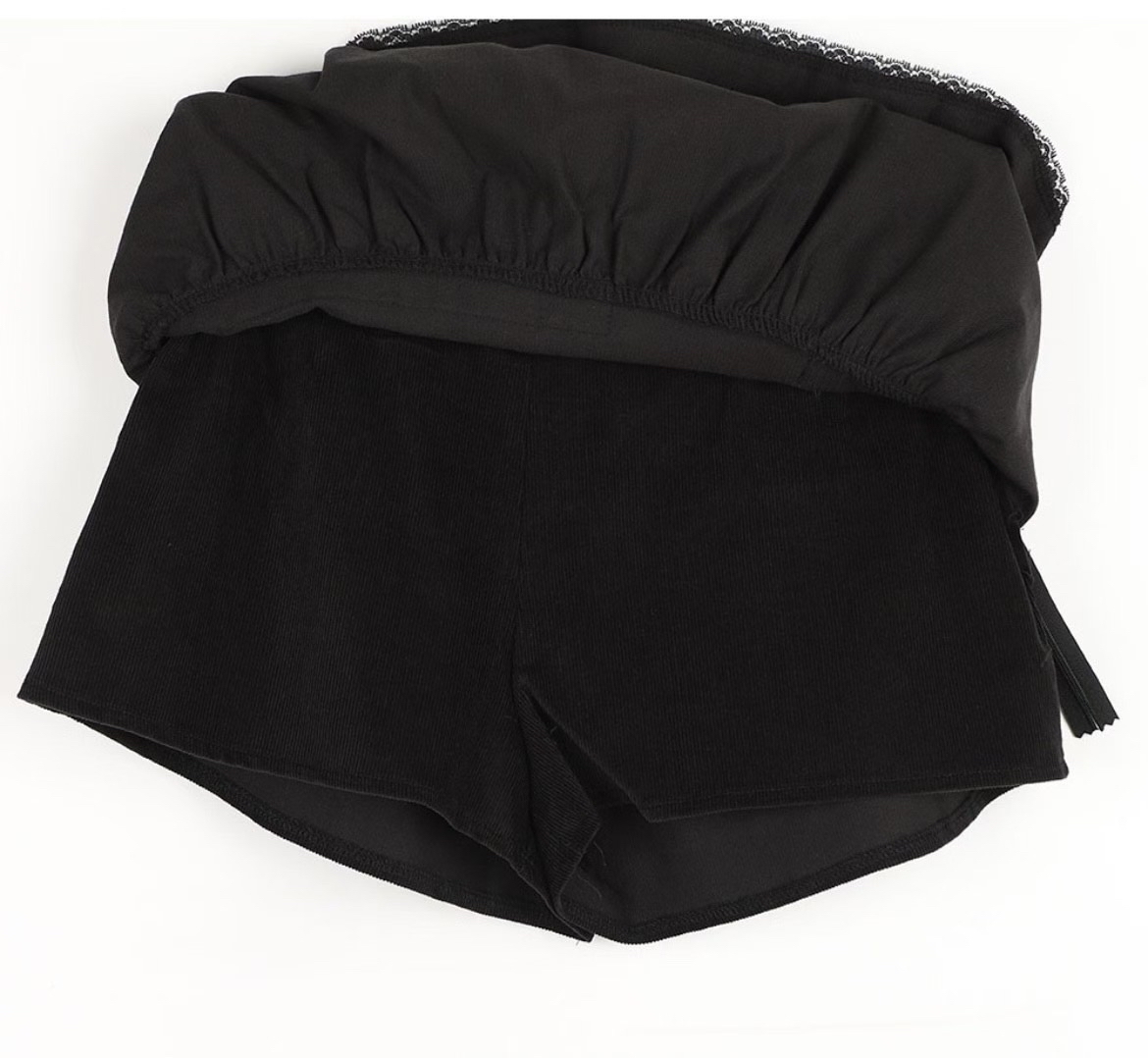 【 :.ღ店主包色自留!美式復古感~🤎美設計!銀扣蛋糕燈芯絨短裙褲ɞ˚】Lace Buckle Corduroy Skirt(兩色入)