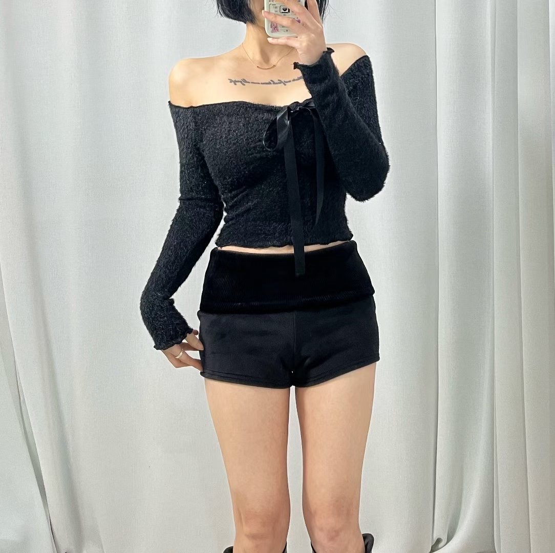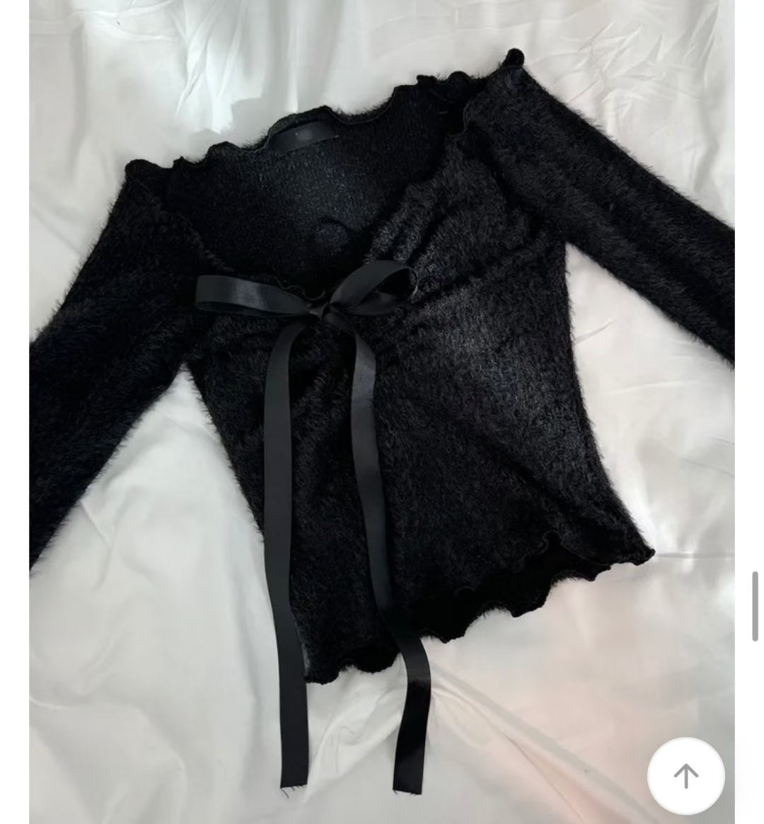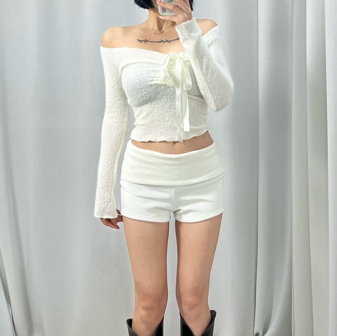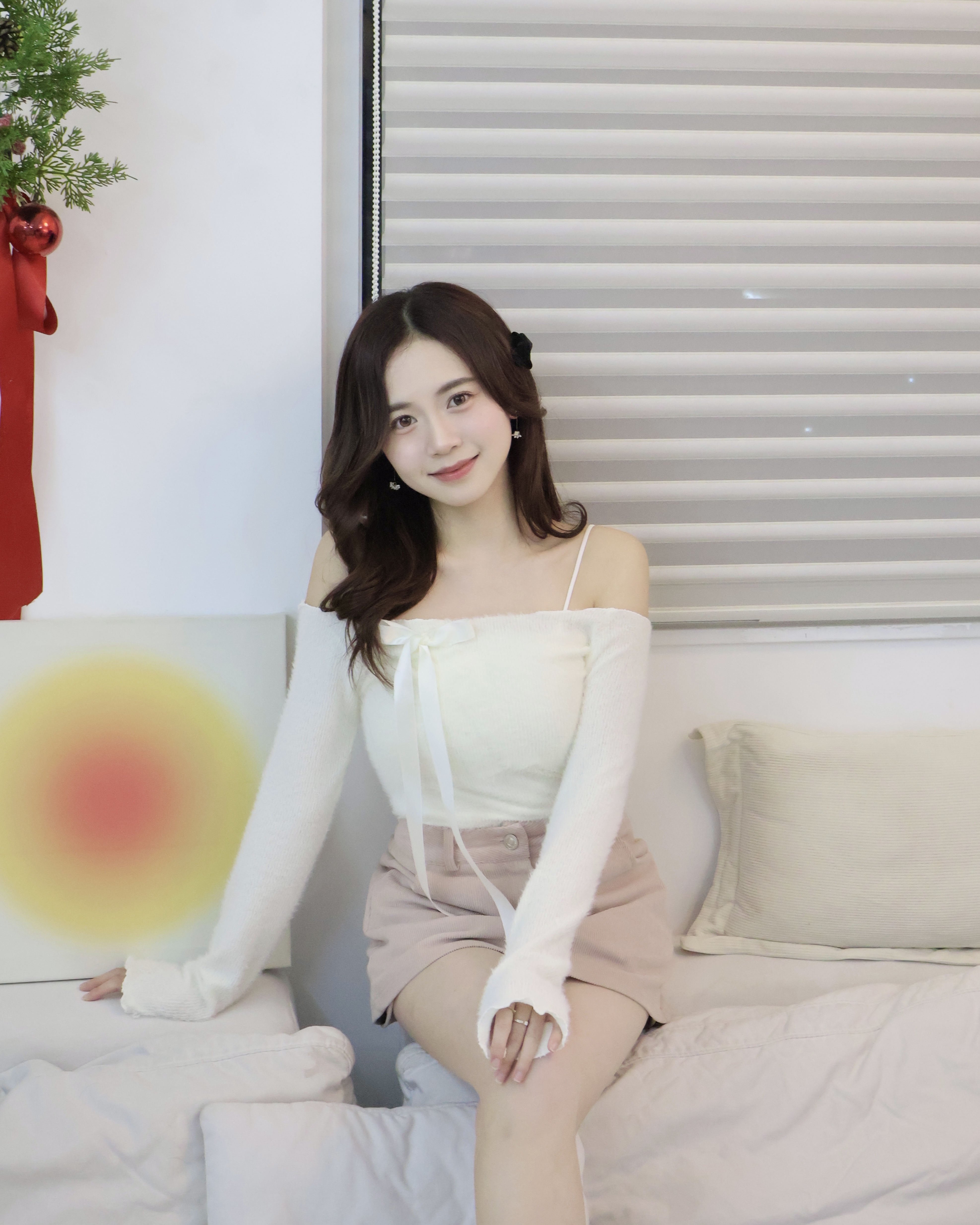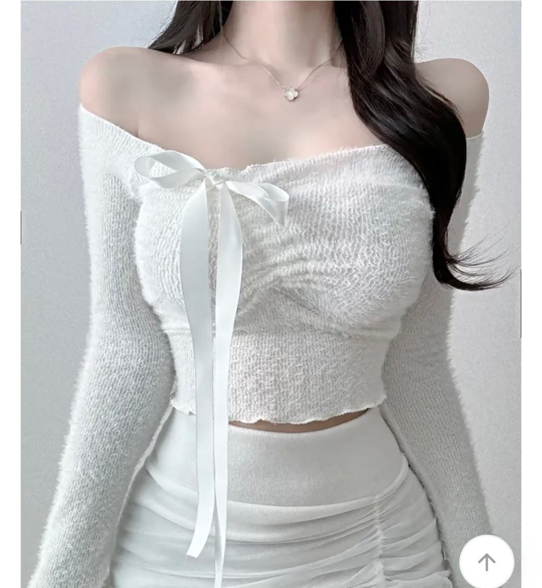 【 ♪ 親自到韓入貨🤍 | 一見鐘情🎀♡打卡必定上鏡~絲帶蝴蝶結毛絨一字膊 】 Pure Ribbon Off Shoulder Top(兩色入)