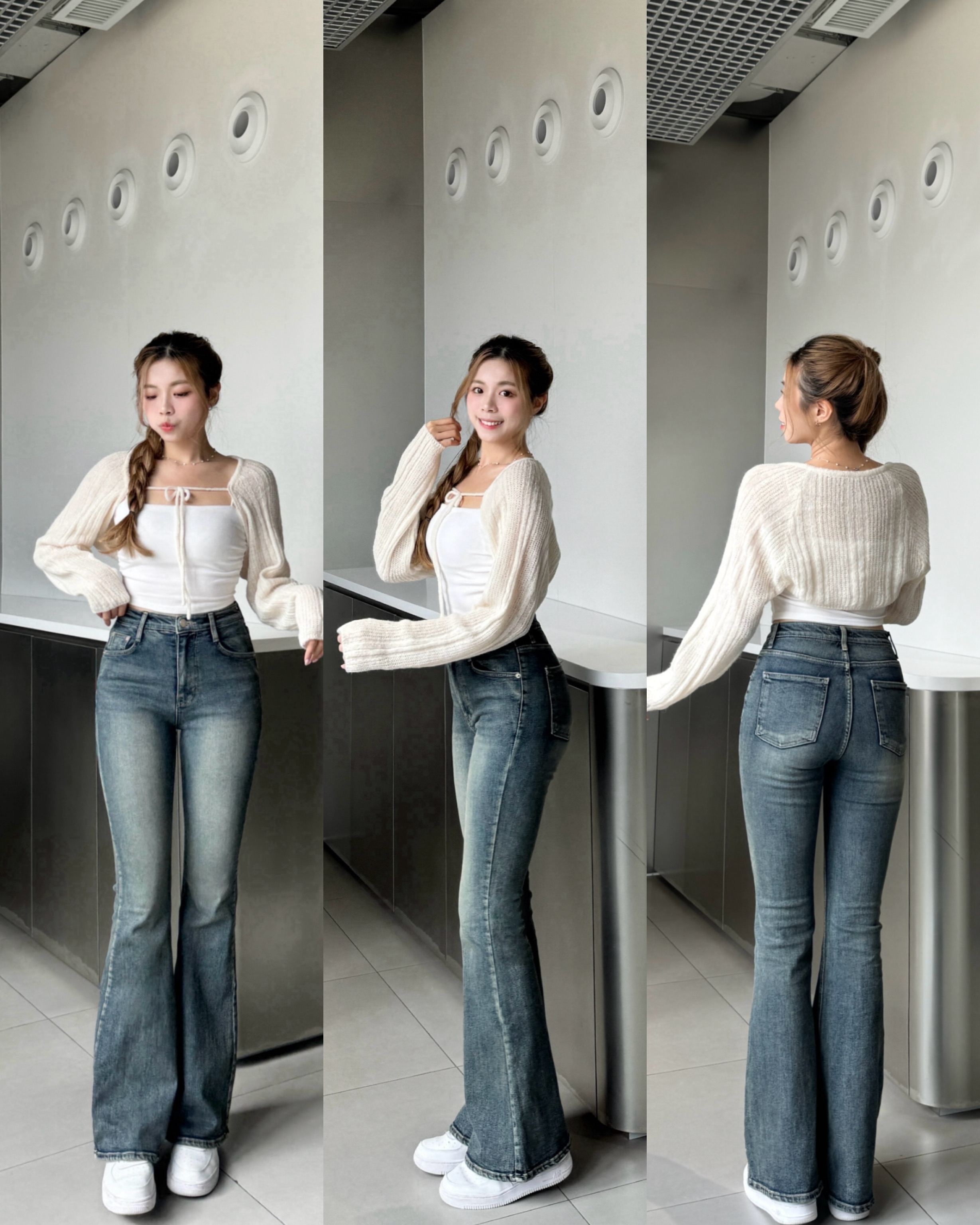 店主165CM SIZE S示範中 超高腰款式~微彈性高質牛仔布料 S:腰部:32cm 臀部42cm 全長103cm M:腰部35cm 臀部44cm 全長104cm L:腰部38cm 臀部46cm 全長105cm 備註 *由於測量部位的不同,尺寸數據可能存在 1~3cm的誤差。 *實測尺寸為平放單面測量 【 Ash Blue Boots Cut Pants 】 極顯瘦神褲~完美喇叭流線型🔥🖤 韓妹必備復古感洗水色牛仔褲~入過數一數二靚嘅喇叭褲 🪐 係穿上效果絕對有驚喜感嘅一款 🤝🏻 話明榮升我心目中嘅神褲!佢版型顏色質量都超級好🙂↔️ 呢間韓國廠商轉款速度超快 快啲把握停產前入手啦!! 廢話唔講咁多 即刻列POINT介紹先꒰ঌ❤︎⸝⸝ʚ̴̶̷̷ · ʚ̴̶̷̷⸝⸝໒꒱𓂃 • 高包覆感嘅修飾效果 連大腿內側鬼鼠肉完美修飾到 ( *營造上筷子腳 下擺微喇叭 * ) • 極高腰落地褲款設計 提高腰線拉長比例 • 漸變暈染洗水灰藍色 好似平時化妝打左陰影感 顯瘦度直線上升!!! • 自帶提臀效果~加上Hip位超貼腰線 突出利落線條感