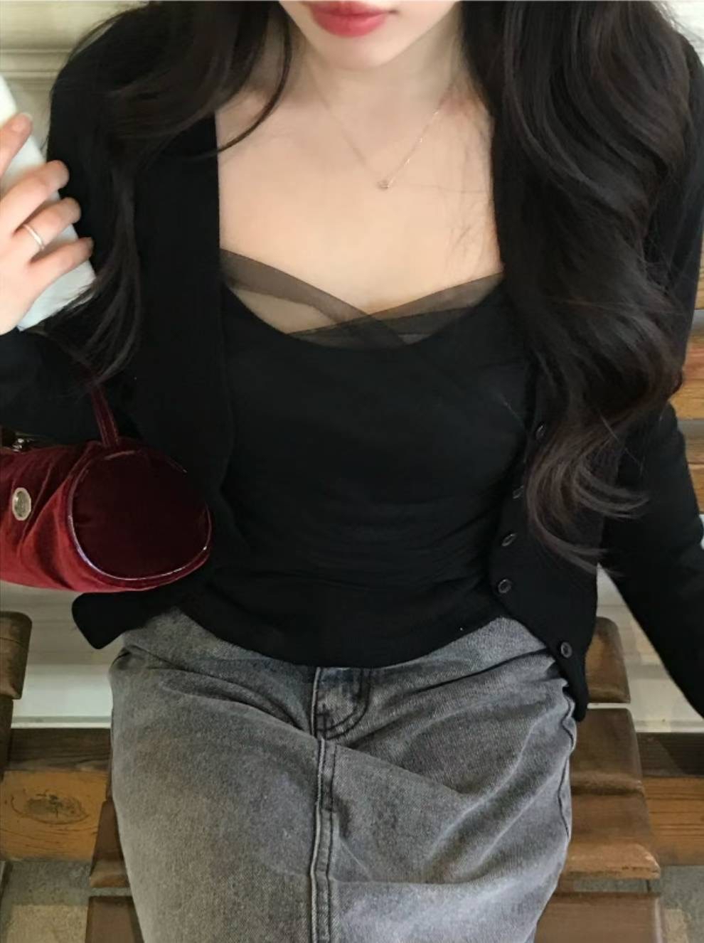 【 今期推薦🍧🤍今季韓妹人手必備~氣質神秘感交叉網紗SET💿 】 Secret Love Top Set(三色入)