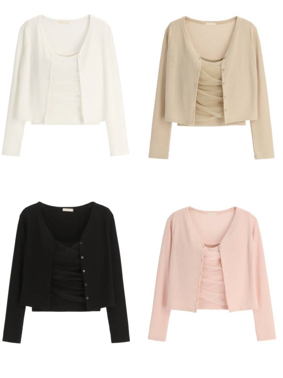 FREE SIZE | 高質軟糯質感~中度彈性💗🤍🖤 OUTER 全長: 46cm 肩寬: 35cm 胸寬: 45cm 袖長: 61cm TANK TOP 全長: 48cm 胸寬: 35cm 備註 *由於測量部位的不同,尺寸數據可能存在 1~3cm的誤差。 *實測尺寸為平放單面測量