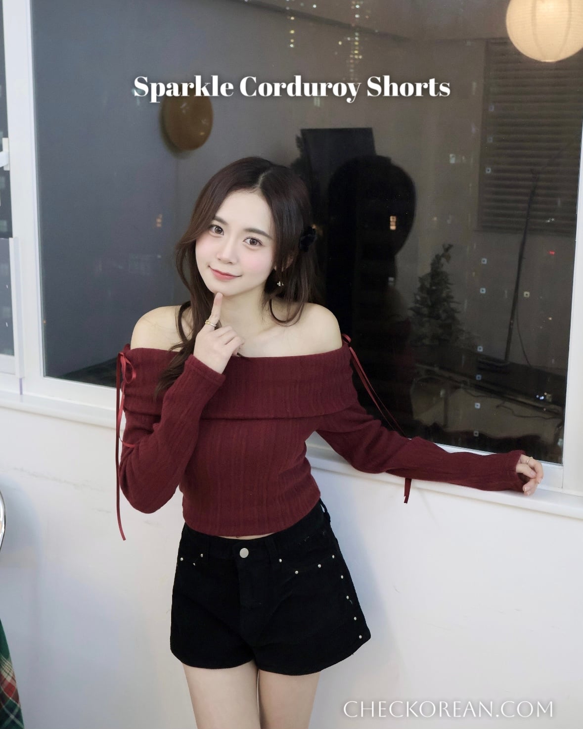 【 親自到韓搜羅🖤 | 店主自留💫秋冬必入の短褲!超好襯~銀色鉚釘燈芯絨短褲💡】 Sparkle Cordory Shorts()