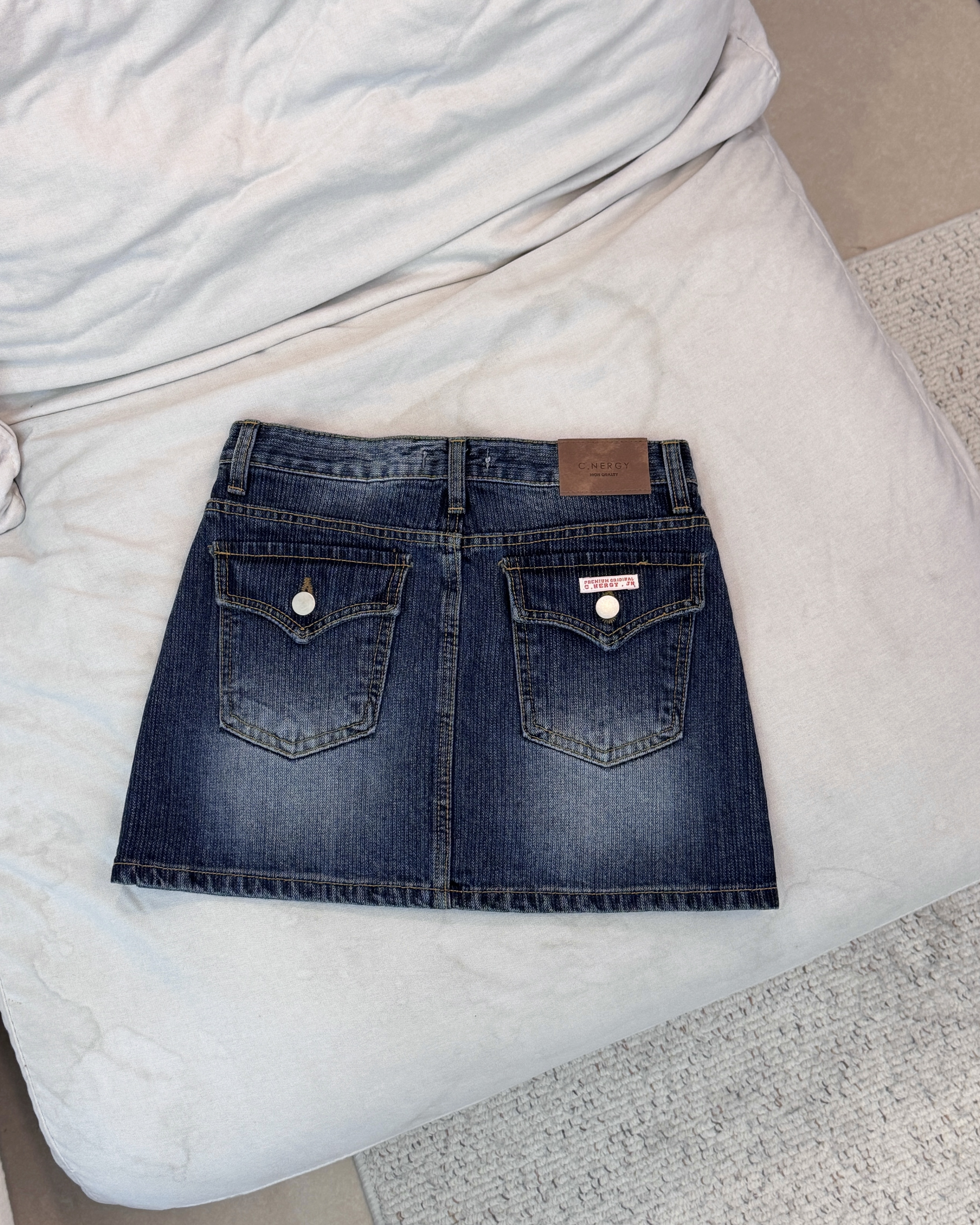 【 親自到韓搜羅🦕 | 極致牛仔質量⋆꙳🖤大愛背面設計~洗水刷色紋理高腰牛仔裙💡】Pocket Denim Skirt(一色入)