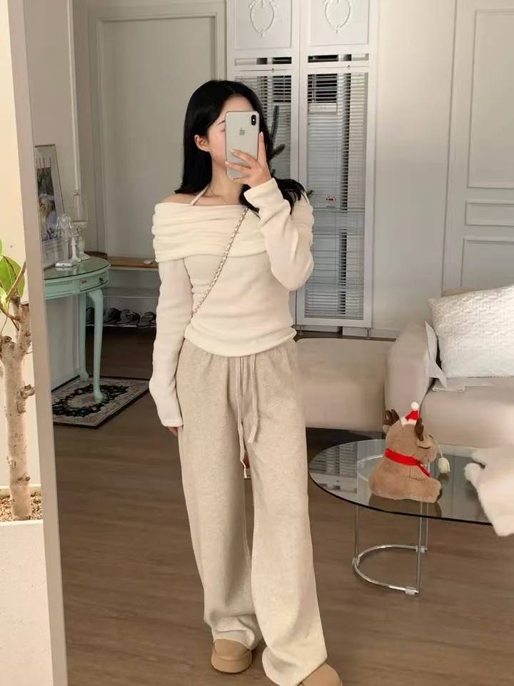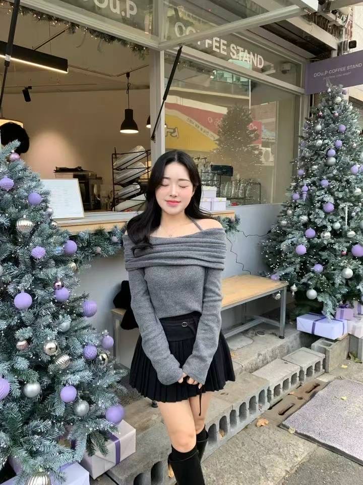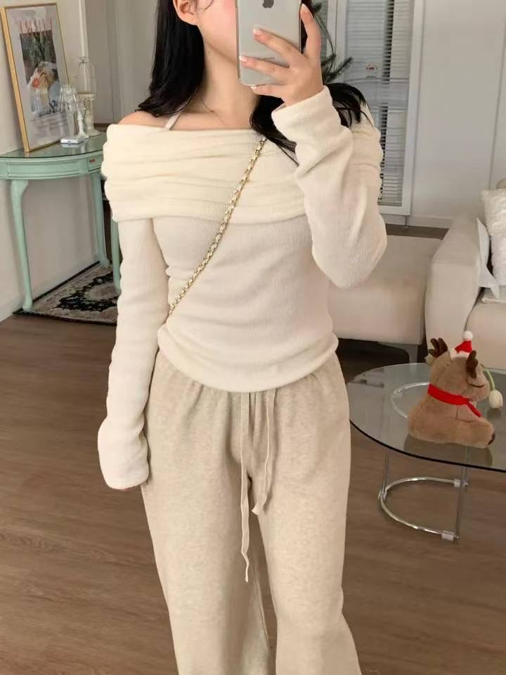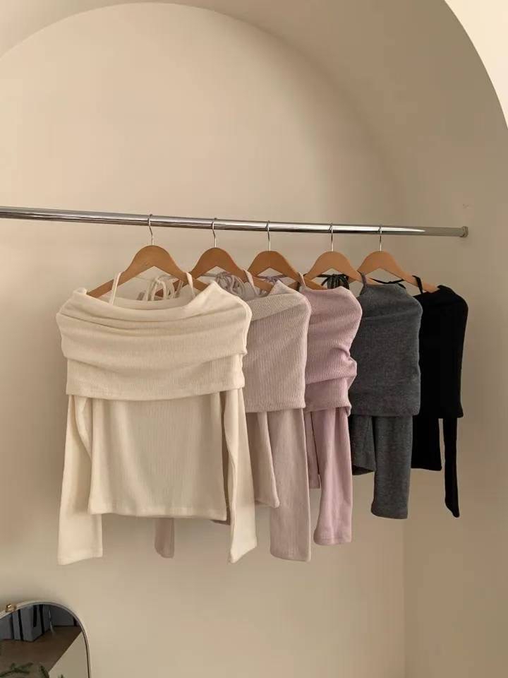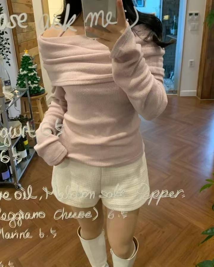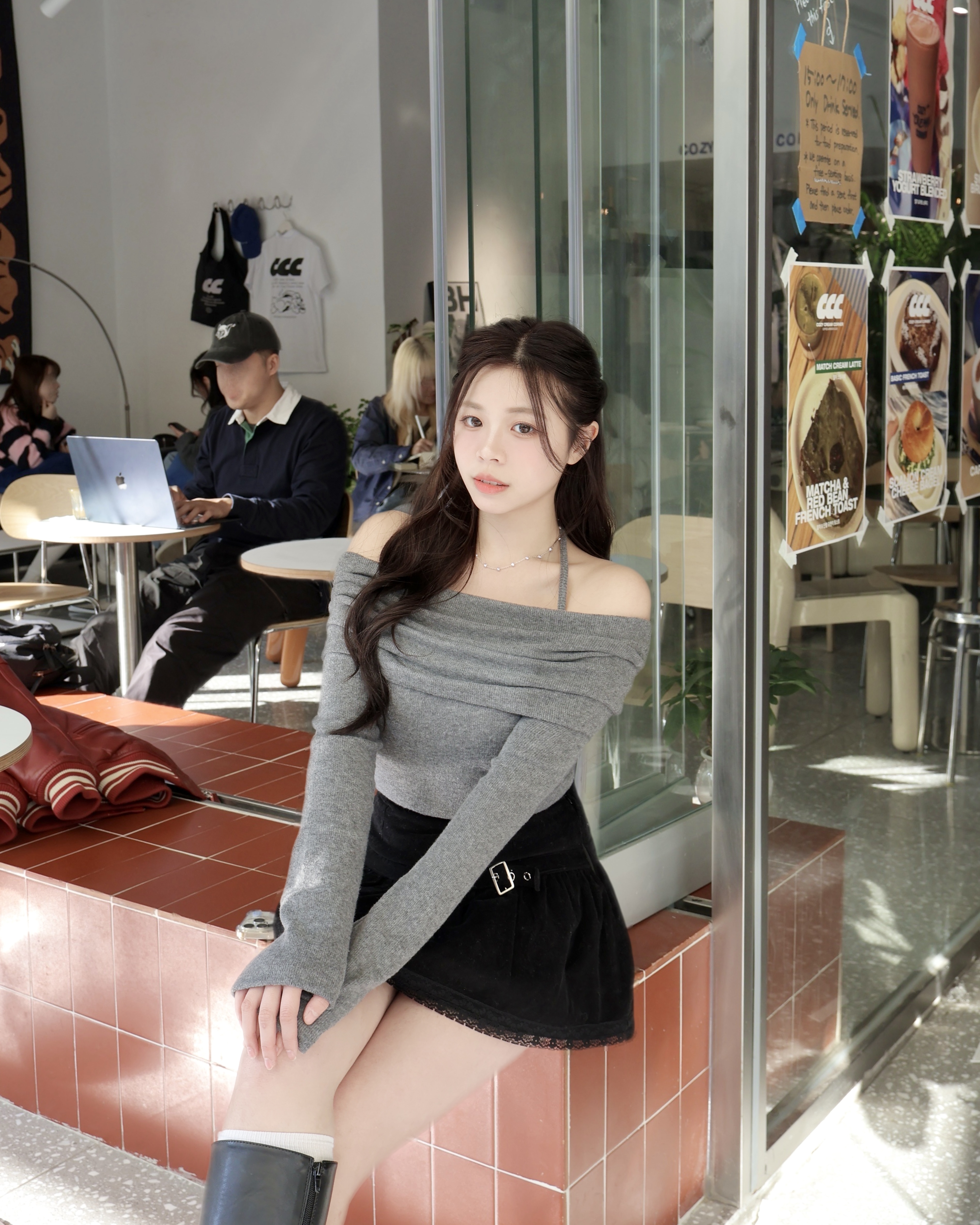 【 親自到韓搜羅🩶 | ♪糯米糍觸感~🪩霧感色調皺褶一字膊綁帶上衣✨ 】Mochi Off Shoulder Top(五色入)