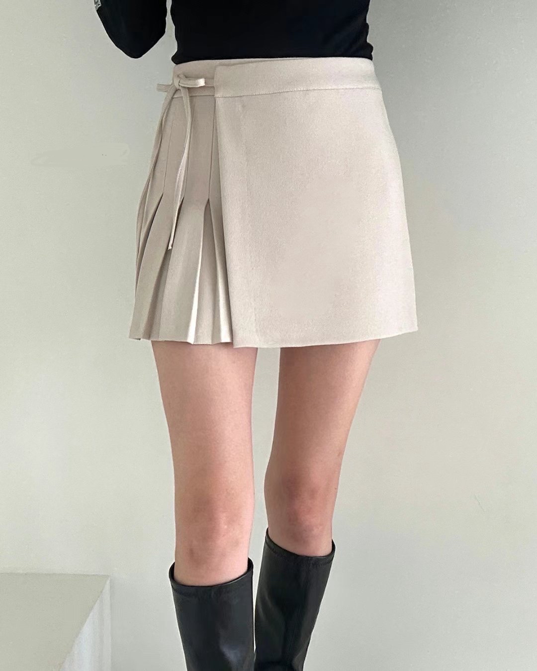 【 🎓學院風~高質不規則半百褶綁帶A字裙褲🩶】Greyish Pleated Ribbon Skirt Pants(三色入)
