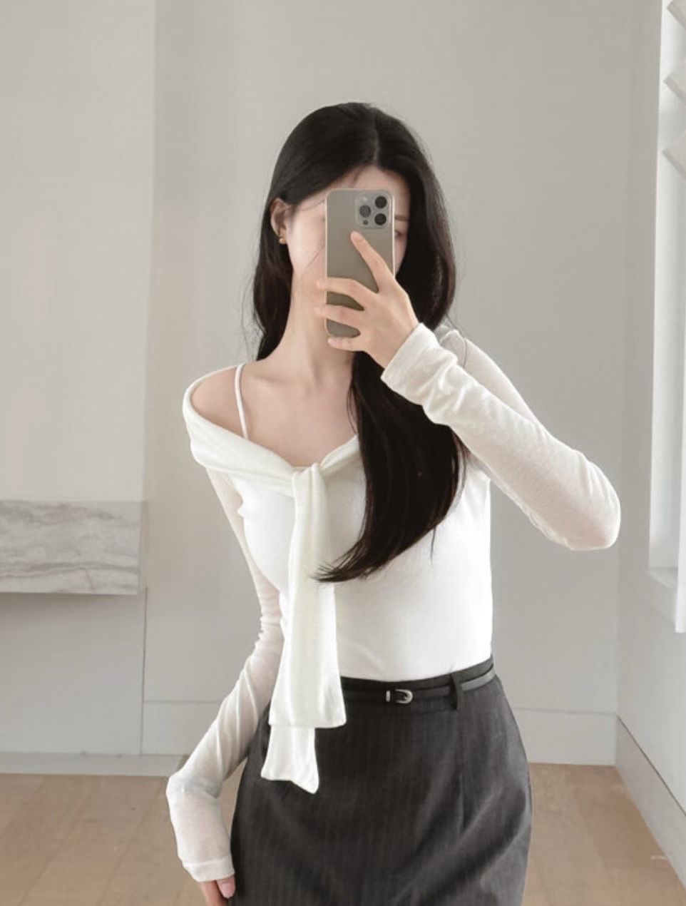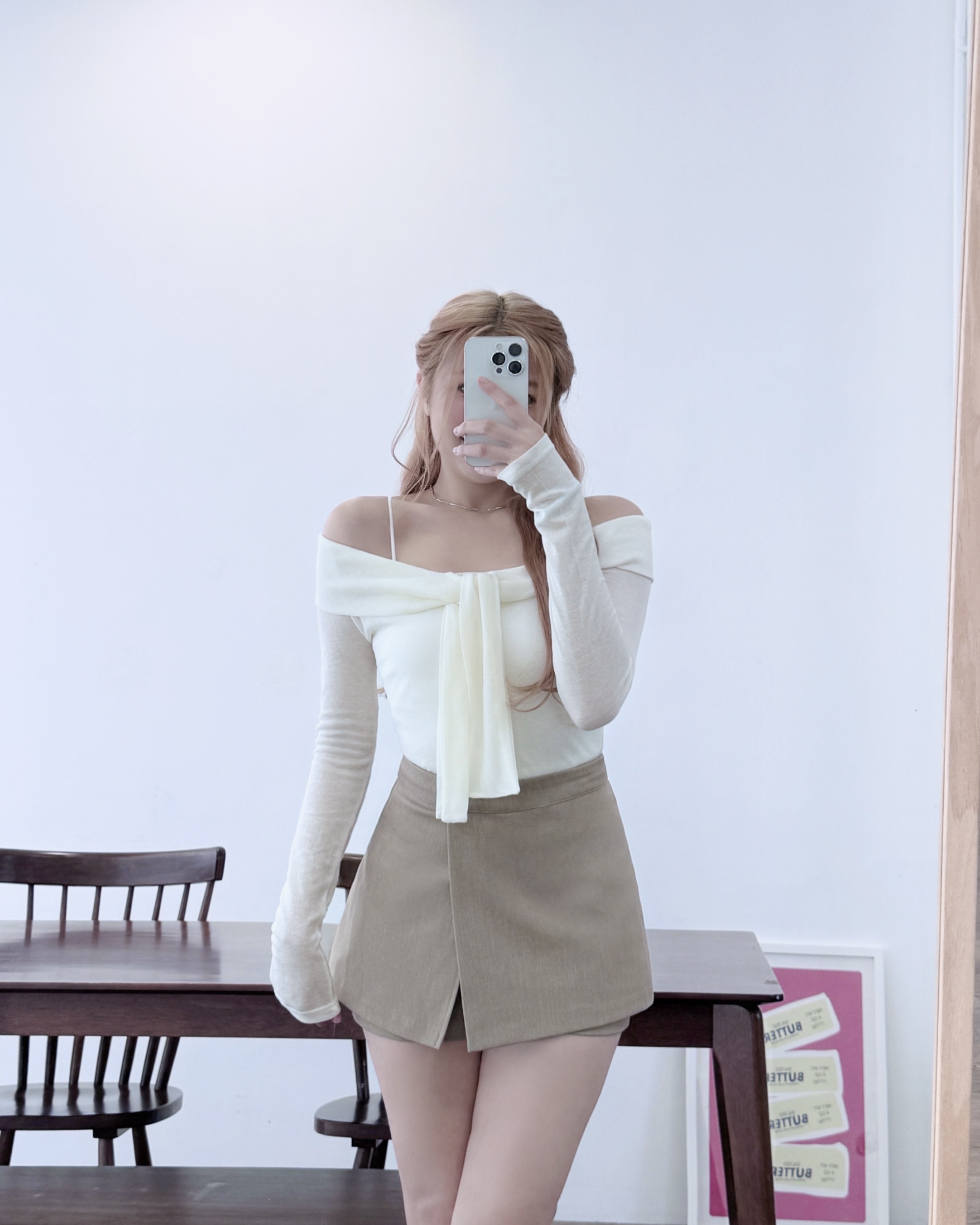 【 💡♪ 極高詢問度⸝⸝⸝♡韓國超hit水手綁帶設計!絕美半透感混色修身TOP✨🤍 】 Strap See-through Slim Top(兩色入)