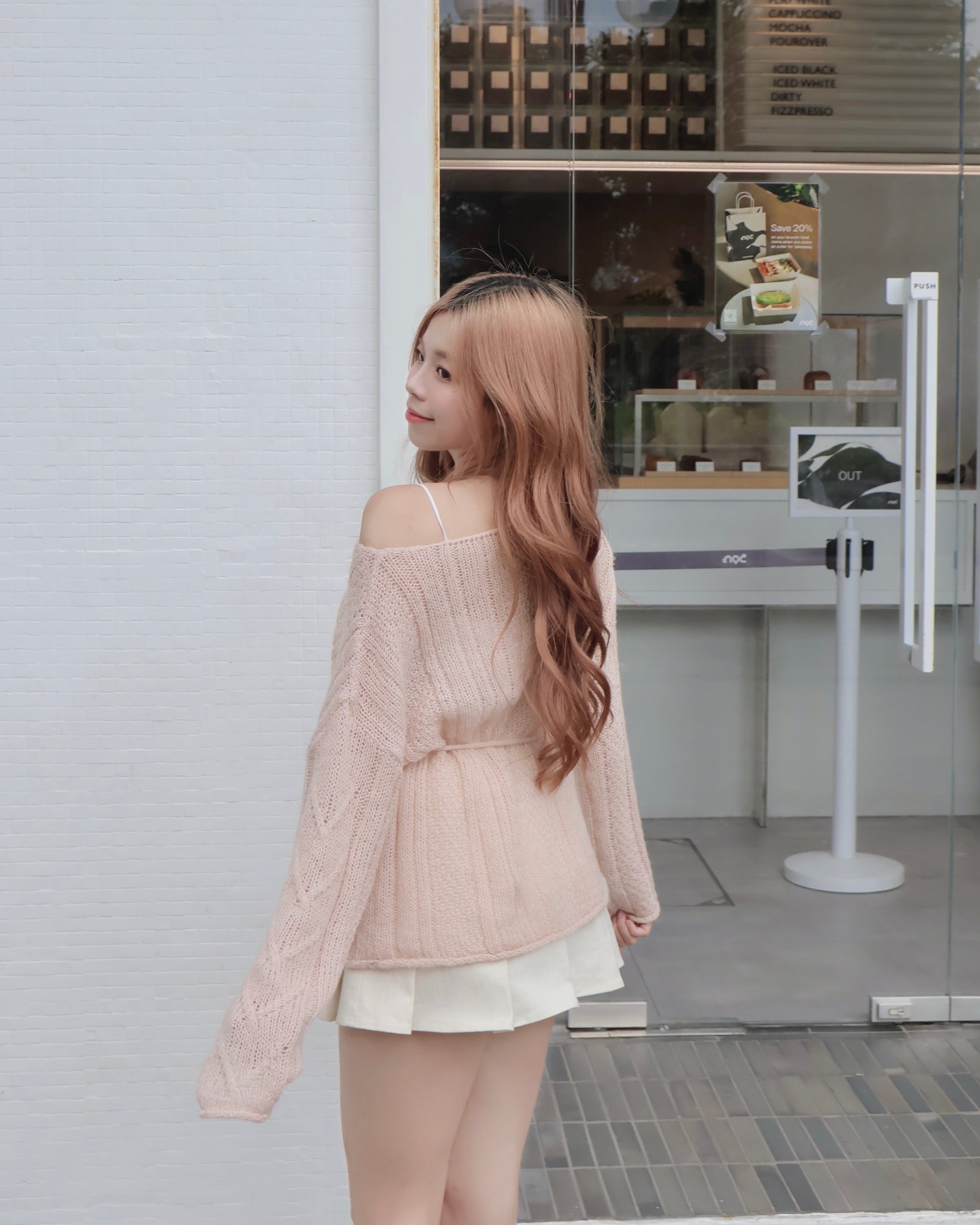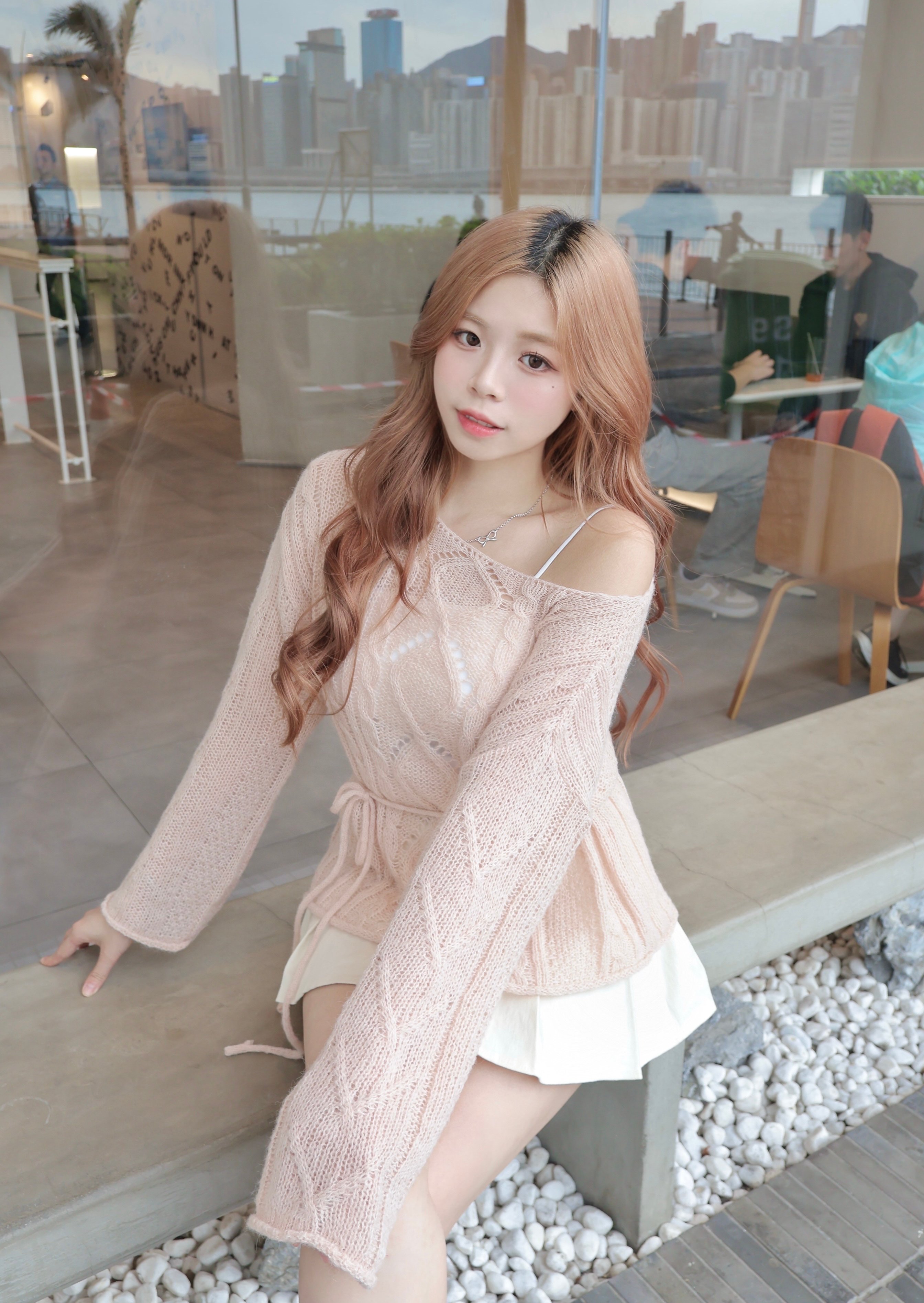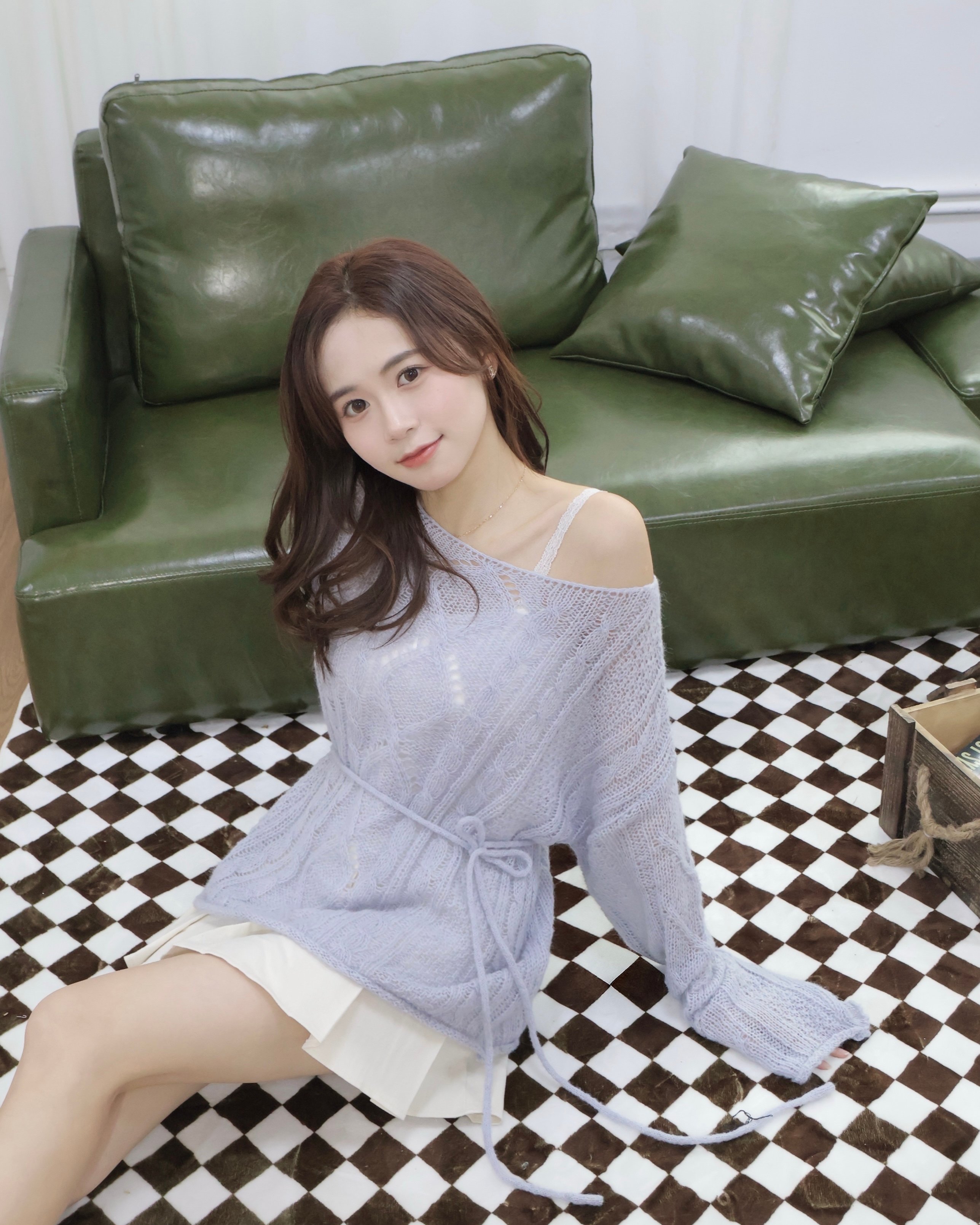 【 🫧女友感~多綁法🩵溫柔軟糯鏤空編織上衣˚ʚɞ配頸帶♡ 】Strap Pastel Knit Top Set(五色入)