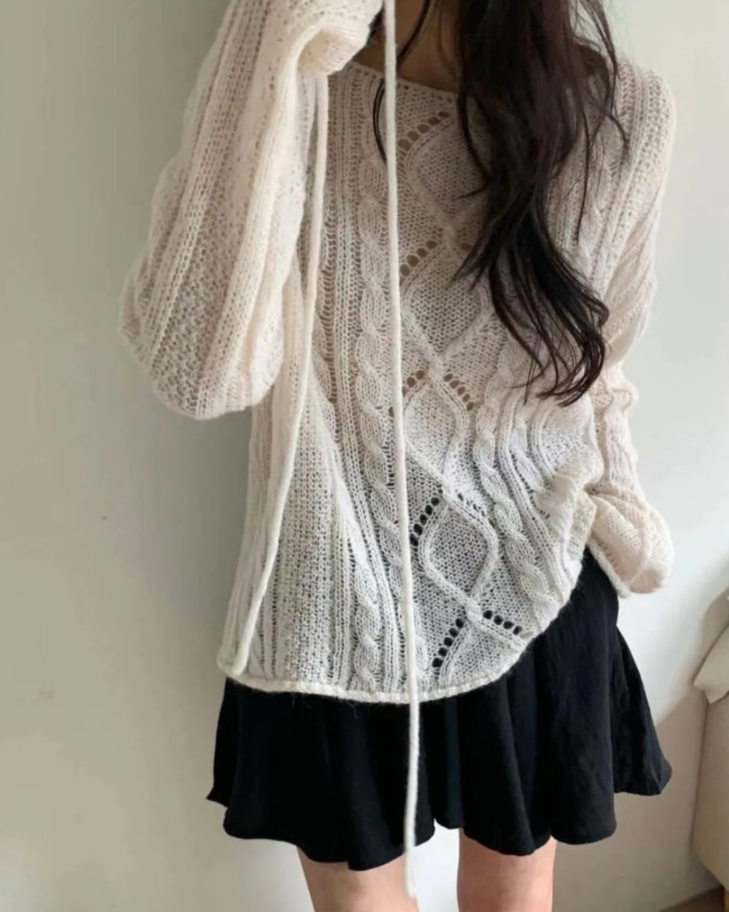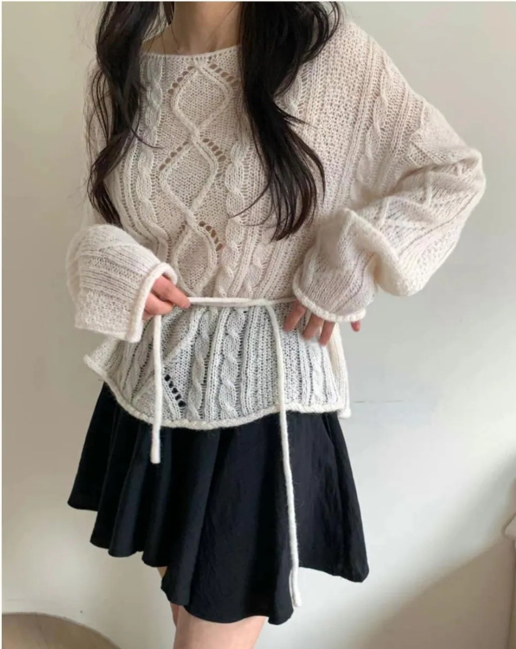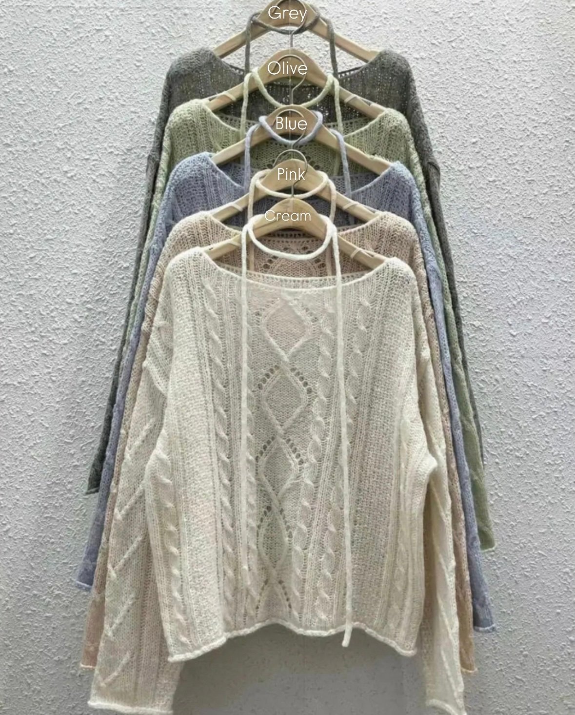 【 🫧女友感~多綁法🩵溫柔軟糯鏤空編織上衣˚ʚɞ配頸帶♡ 】Strap Pastel Knit Top Set(五色入)